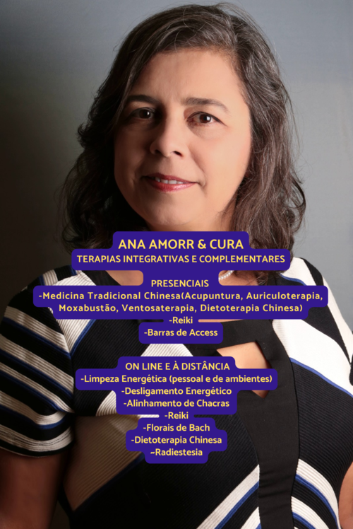 Aqui eu priorizo o acolhimento e o seu equilíbrio físico, mental, emocional, buscando uma vida mais leve e feliz. Sou farmacêutica bioquímica com 32 anos de formação com experiências na área de farmácia, hospitalar e terapias integrativas há 12 anos.Pós Graduada em Acupuntura e Medicina Tradicional Chinesa, Mestra em Reiki Usui, formação em terapia Floral pelo The Bach Centre -Inglaterra, practitioner em Barras de Access, Radiestesista.Dores em geral, insônia, ansiedade, síndrome do pânico, depressão, TPM e tantas outras são tratadas e aliviadas com as terapias complementares que realizo com muito sucesso.TERAPIAS PRESENCIAIS-Medicina Tradicional Chinesa(Acupuntura, Auriculoterapia, Moxabustão, Ventosaterapia, Dietoterapia Chinesa)-Reiki-Barras de AccessTERAPIAS ON LINE E À DISTÂNCIA -Limpeza Energética (pessoal e de ambientes)-Desligamento Energético-Alinhamento de Chacras-Reiki-Florais de Bach-Dietoterapia Chinesa-Radiestesiainstagram:@anaamorrcuraDúvidas e agendamentos via whatsapp 19996419770