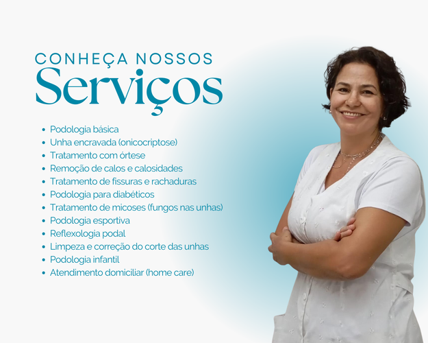 Sou a Cris, podóloga especializada em cuidados preventivos e tratamentos podológicos, com foco em atendimento humanizado e soluções eficazes para o alívio da dor. Atendo pessoas que enfrentam desconfortos como unhas encravadas, calosidades, micoses e fissuras, sempre priorizando a segurança, o conforto e o bem-estar.Meu trabalho é pensado para quem passa longos períodos em pé e precisa de um cuidado rápido e profissional. O atendimento é realizado de forma express, sem necessidade de agendamento, oferecendo praticidade para a rotina dos professores.Será um prazer cuidar dos seus pés com atenção, respeito e dedicação.